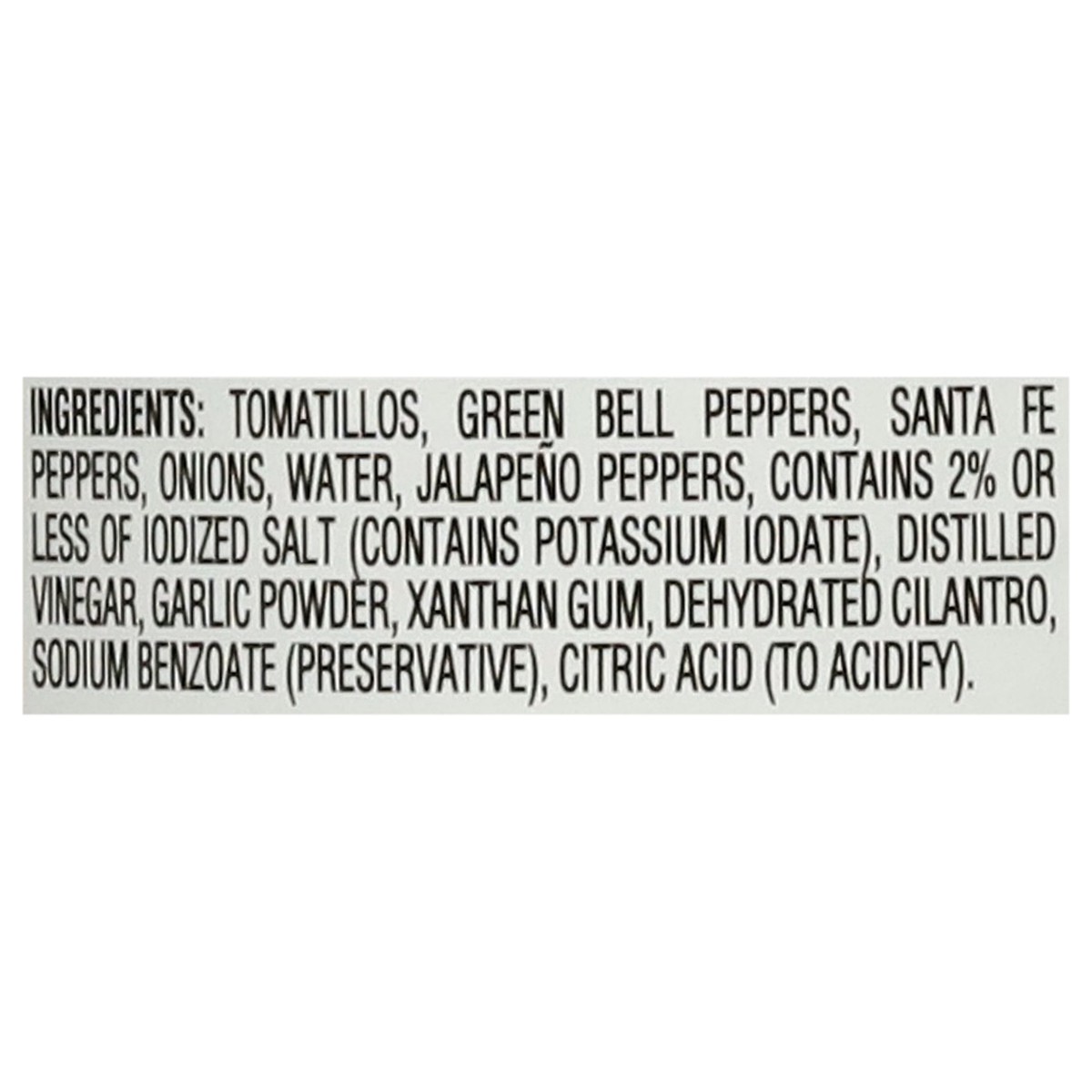 Ingredients: Tomatillos, Jalapeño Peppers, Tomatillos (Tomatillos, Citric Acid [To Acidify], Calcium Chloride [Firming]), Water, Green Bell Peppers, Onions, Contains 2% or less of Salt, Garlic, Garlic…