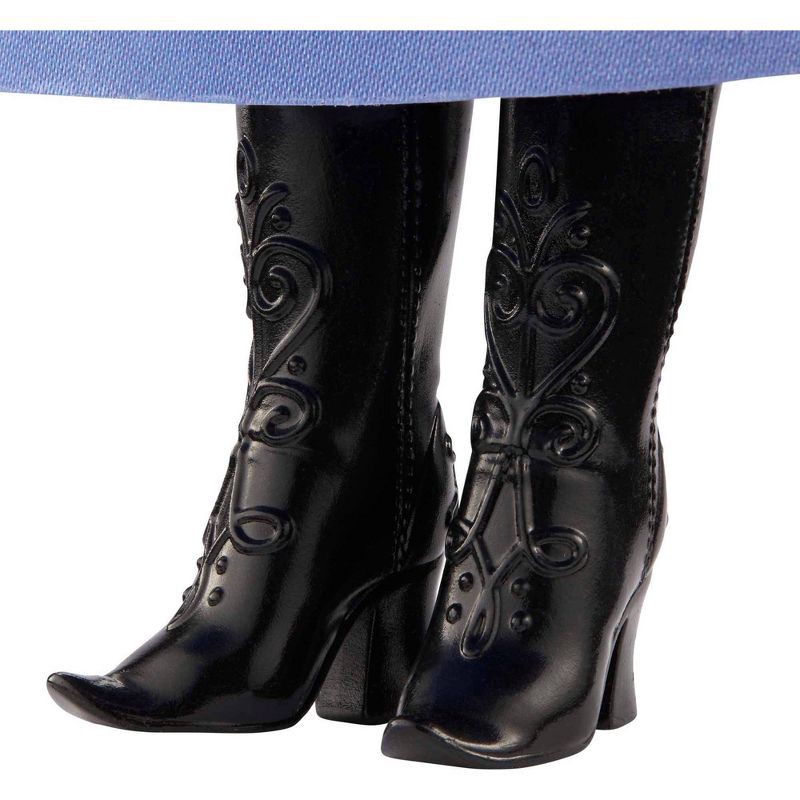 - This posable Anna fashion doll wears her signature blue and purple travel outfit, featuring a removable soft cape, skirt, and shoes