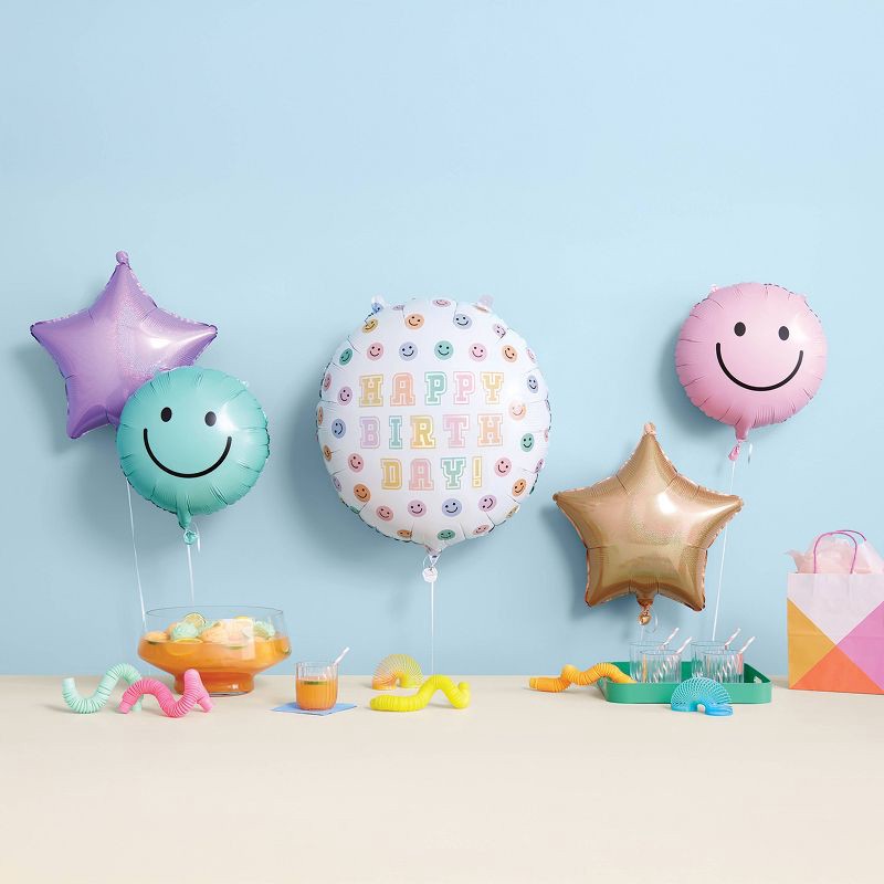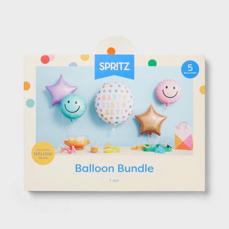 5ct Smiley Face Happy Birthday Foil Balloon Bouquet- Spritz™