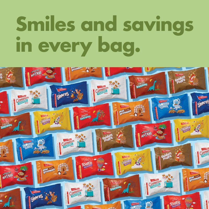 - One 32 oz resealable cereal bag of Malt O Meal Fruity Dyno Bites Cereal