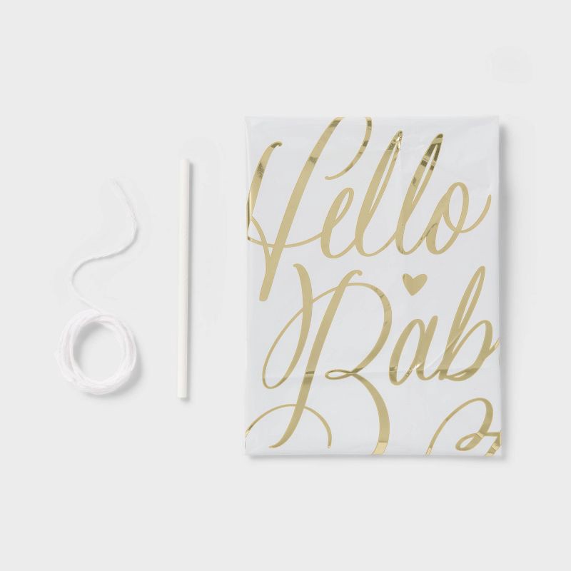 Hello Baby Round Foil Balloon White and Gold - Spritz™