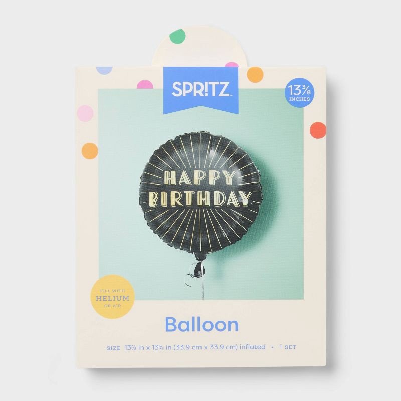Happy Birthday Black and Gold Round Foil Balloon- Spritz™