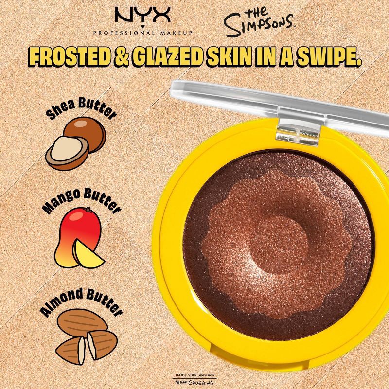 - D'oh-not Miss This Glow: For a sweet glow, swipe Homer Simpson Donut Highlighter powder on cheekbones, brow bone, and cupid's bow. Blend for a deliciously luminous finish with irresistible shimmer