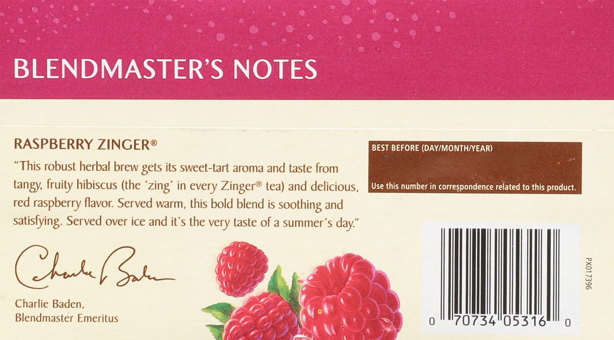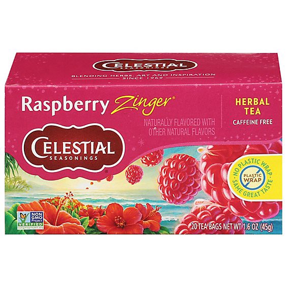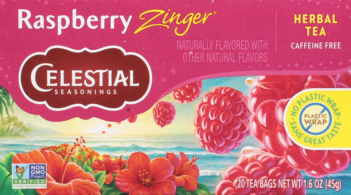 Celestial Seasonings Herbal Tea Bags Caffeine Free Raspberry Zinger 20 Count - 1.6 Oz