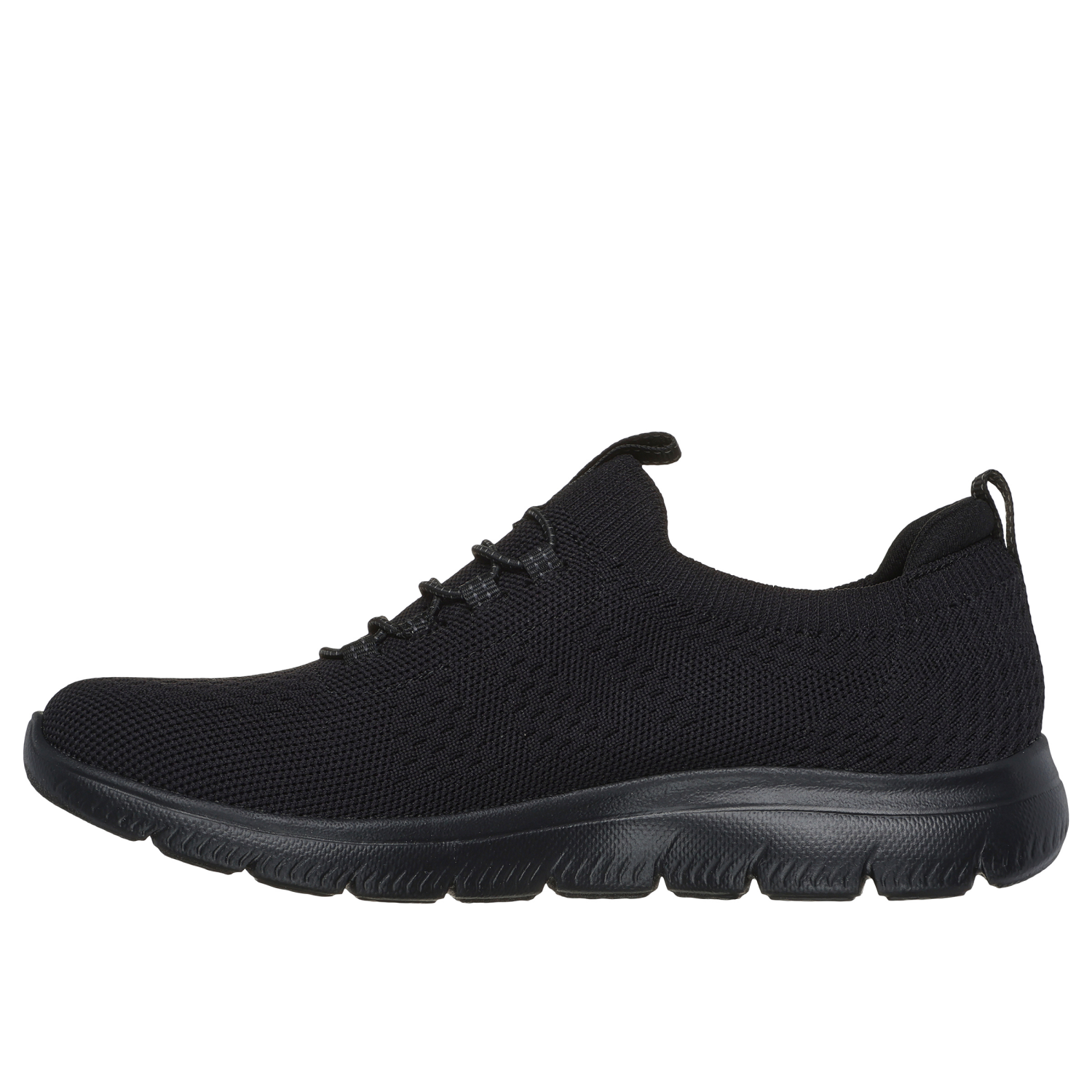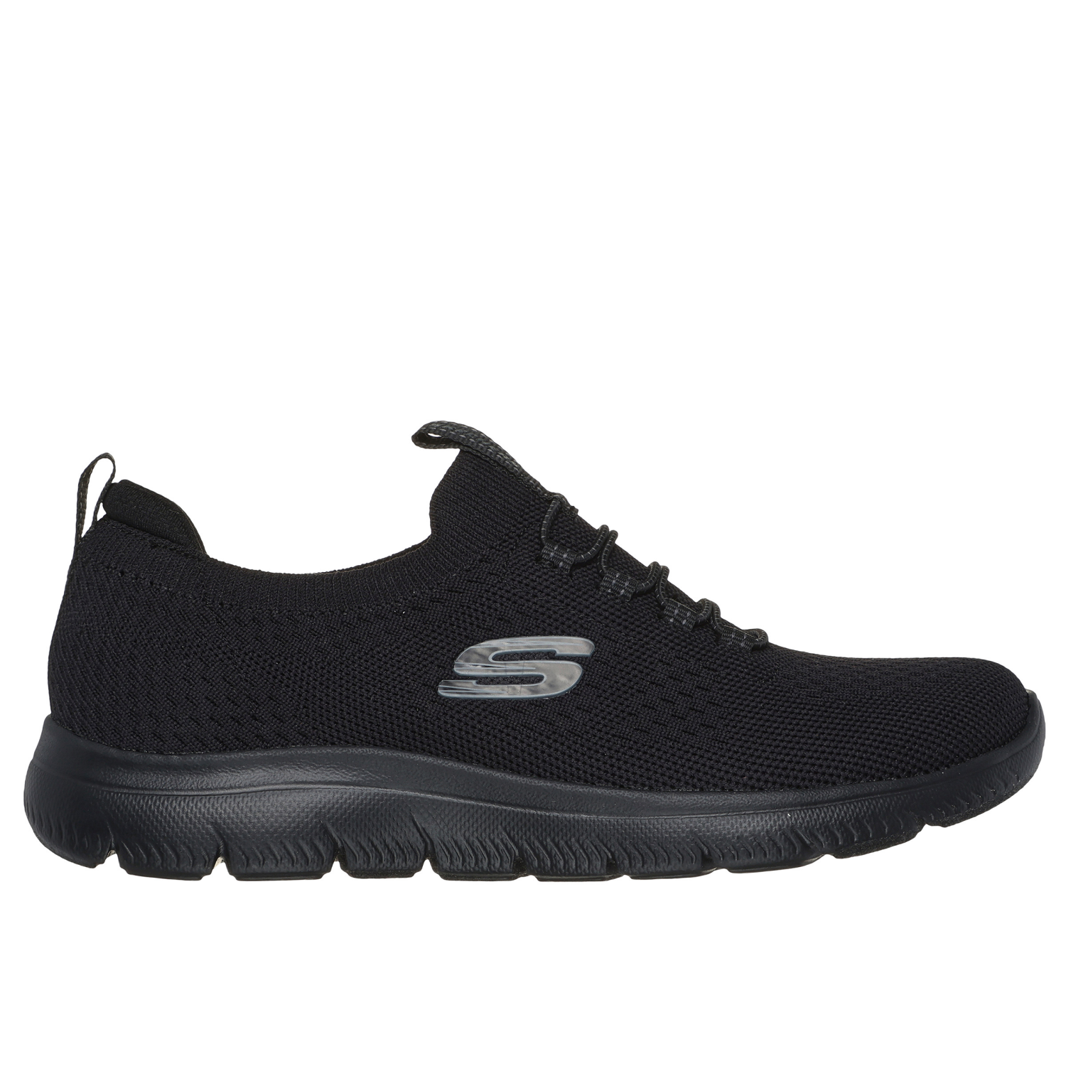 Reach the height of comfort and athletic style with Skechers Summits. This stretch-laced vegan design features a Stretch Fit engineered knit upper and a cushioned Skechers Memory Foam comfort insole.