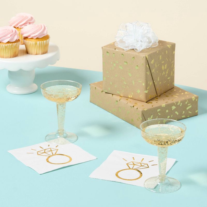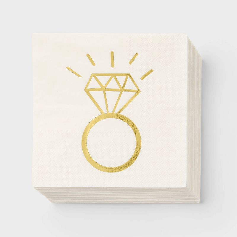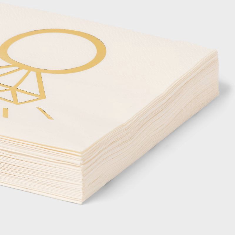 30ct Wedding Ring Foil Beverage Napkins Gold - Spritz™