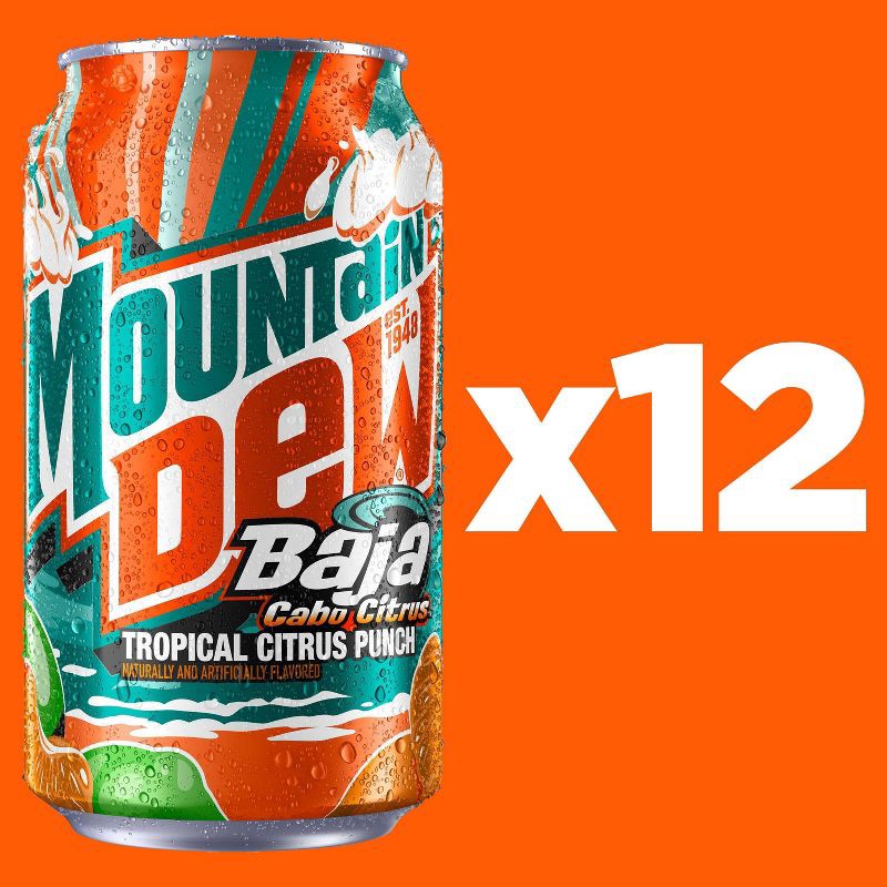 - Includes 12 (12 fl oz) cans of Mountain Dew Baja Cabo Citrus.
