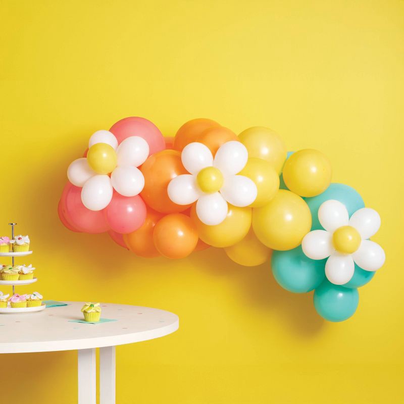 - Fun balloon garland arch kit with multicolor and daisy accents