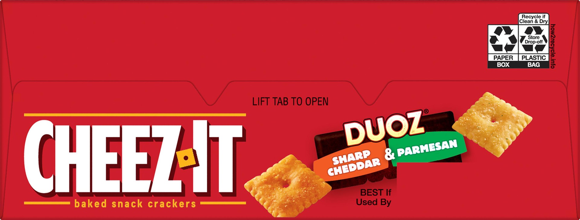 Two bold flavors combined in 1 Cheez-It Duoz box? It''s an outrageously craveable combo cheese lovers can''t resist. Cheez-It Duoz Sharp Cheddar and Parmesan baked snack crackers are made with 100% re…
