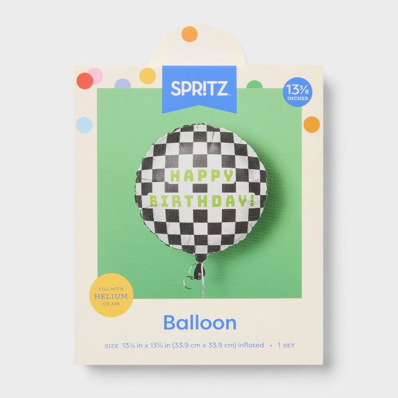 Celebrate birthday in style with this checkered Happy Birthday round foil balloon. The black-and-white design delivers a modern look that adds a pop to any party. Durable foil holds helium or air for …