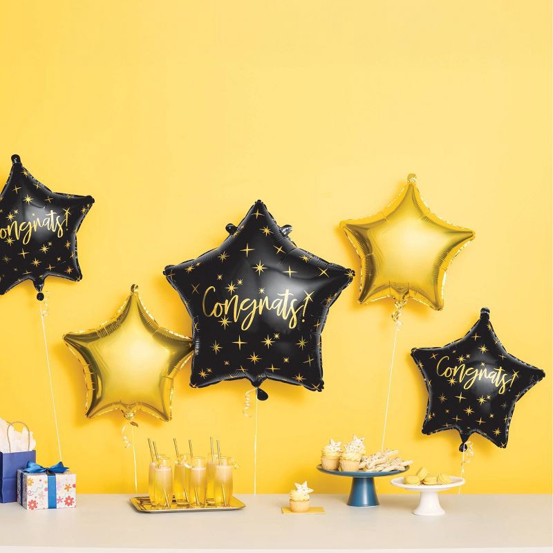 - Pack includes 5 foil balloons in black and gold