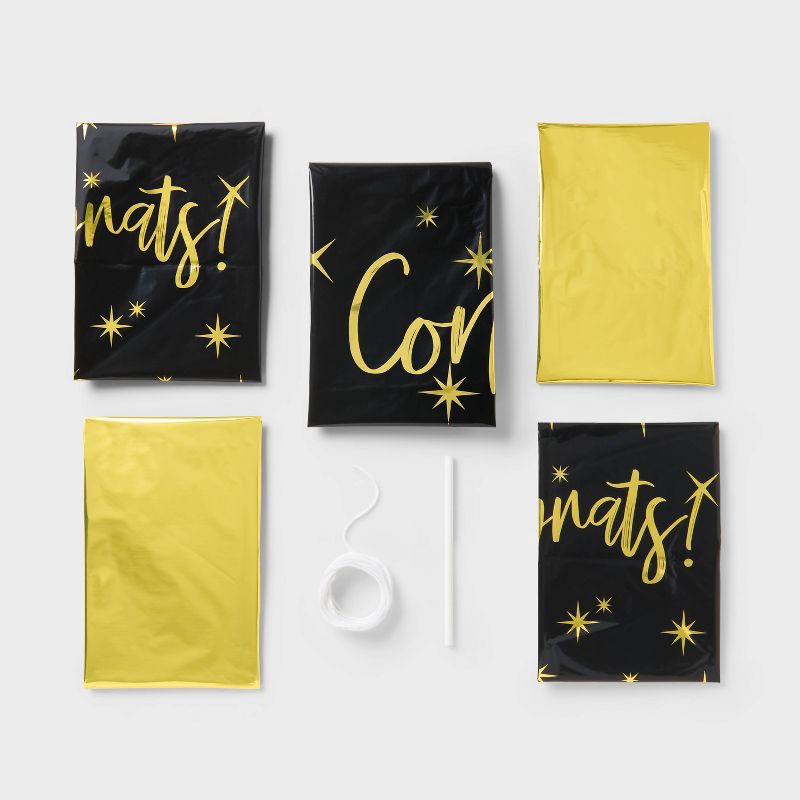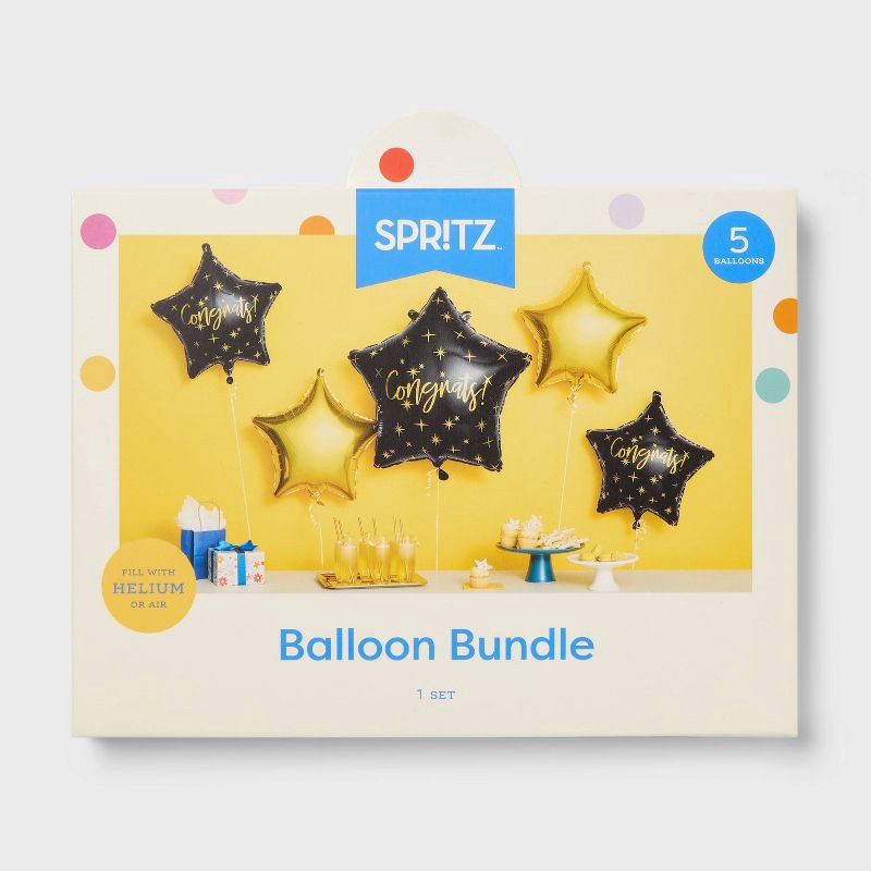 5ct Congrats Foil Balloon Bouquet Black and Gold - Spritz™