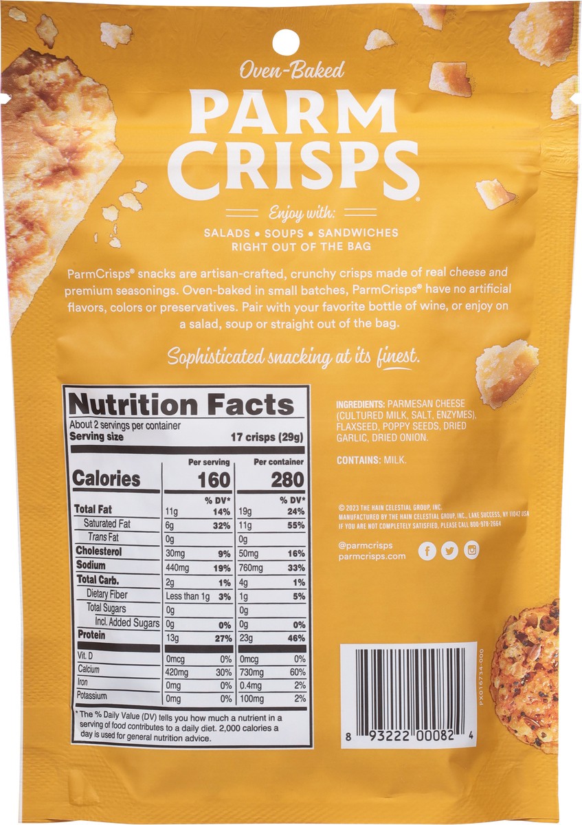 Real cheese snack. ParmCrisps branded snacks are artisan-crafted, crunchy crisps made of real cheese and premium seasonings. Oven-baked in small batches, ParmCrisps have no artificial growth hormones …