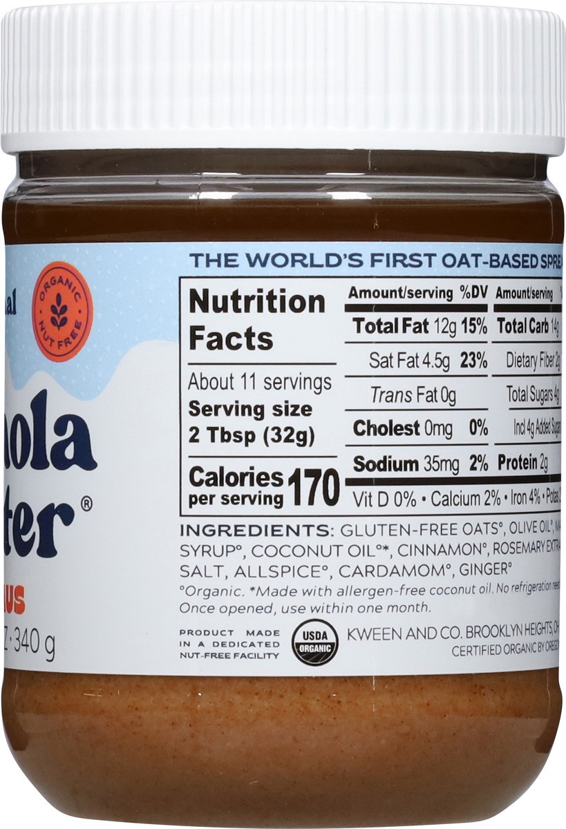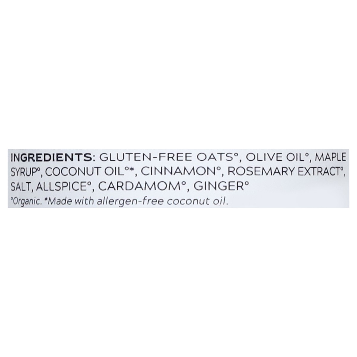 Gluten-Free Oats(a), Olive Oil(a), Maple Syrup(a), Coconut Oil(a)*, Cinnamon (a), Rosemary Extract(a), Salt, Allspice(a), Cardamom(a), Ginger(a). (a) Organic. * Made with Allergen-Free Coconut Oil.