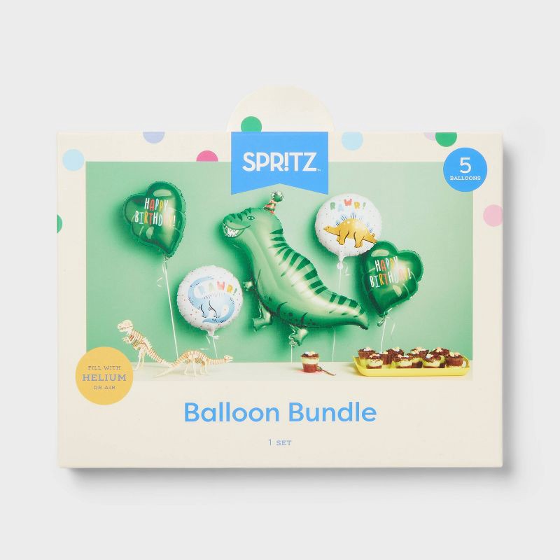 5ct Dinosaur Happy Birthday Foil Balloon Bouquet- Spritz™