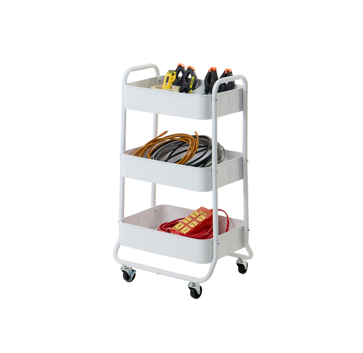 slide 1 of 8, Real Home 3 Tier Metal Utility Cart White, 1 ct