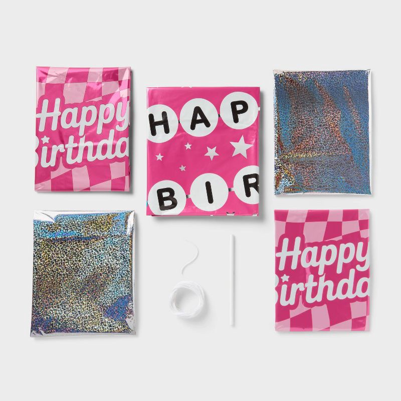 5ct Happy Birthday Friendship Bracelet Foil Balloon Bouquet Pink - Spritz™