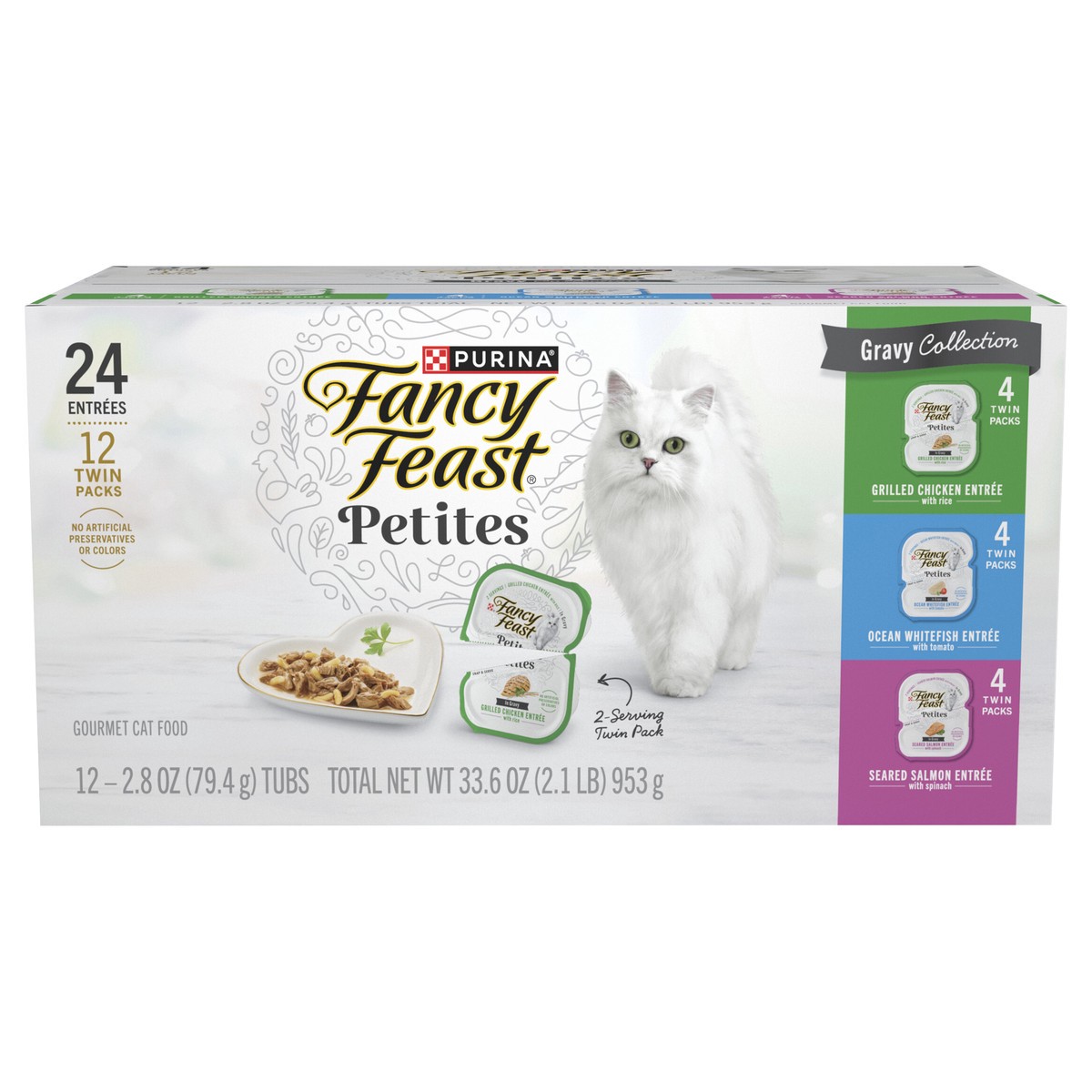 Purina Fancy Feast Gourmet Wet Cat Food Variety Pack, Petites Gravy Collection, break-apart tubs, 24 servings