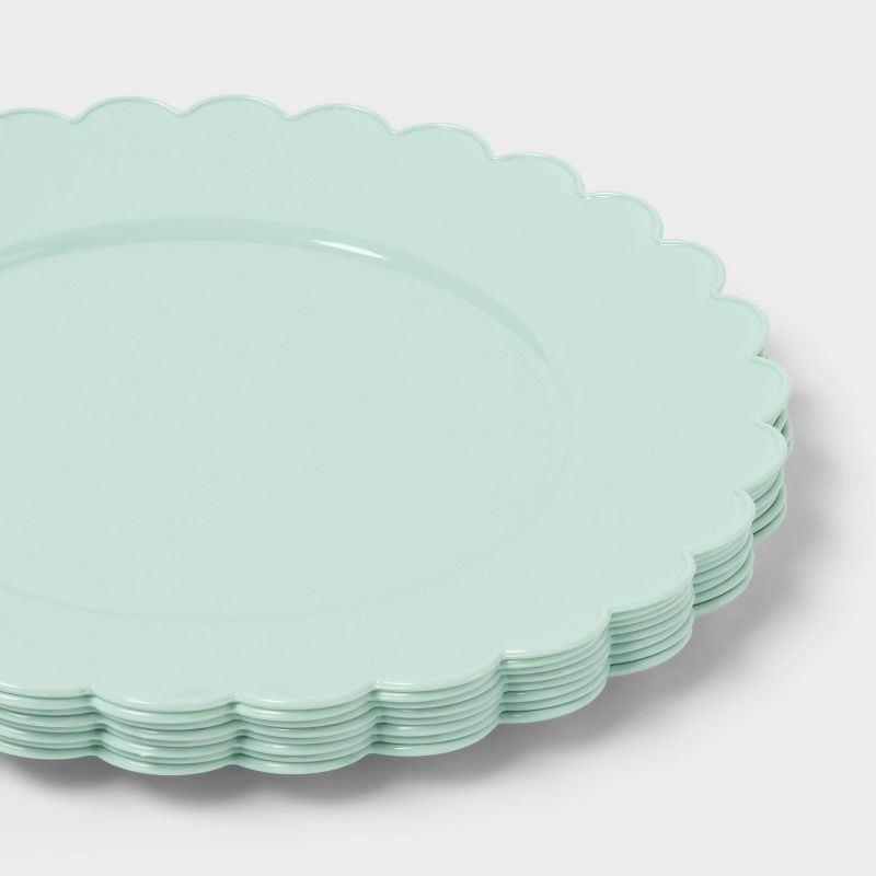 8ct Sage Green Scallop Dinner Plastic Plates - Spritz™"