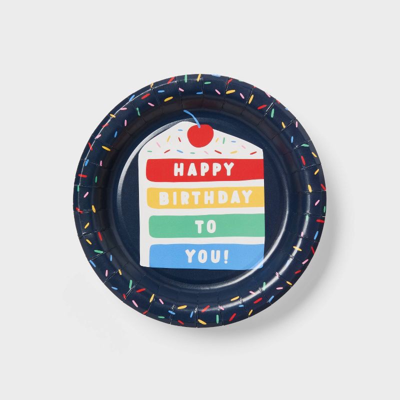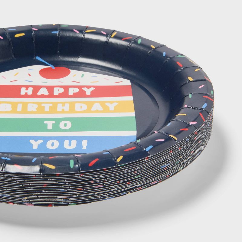 20ct Navy Birthday Cake Slice Snack Paper Plates - Spritz™"