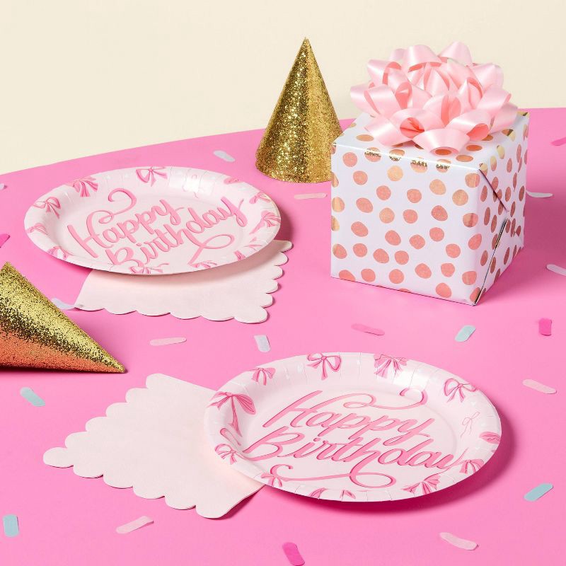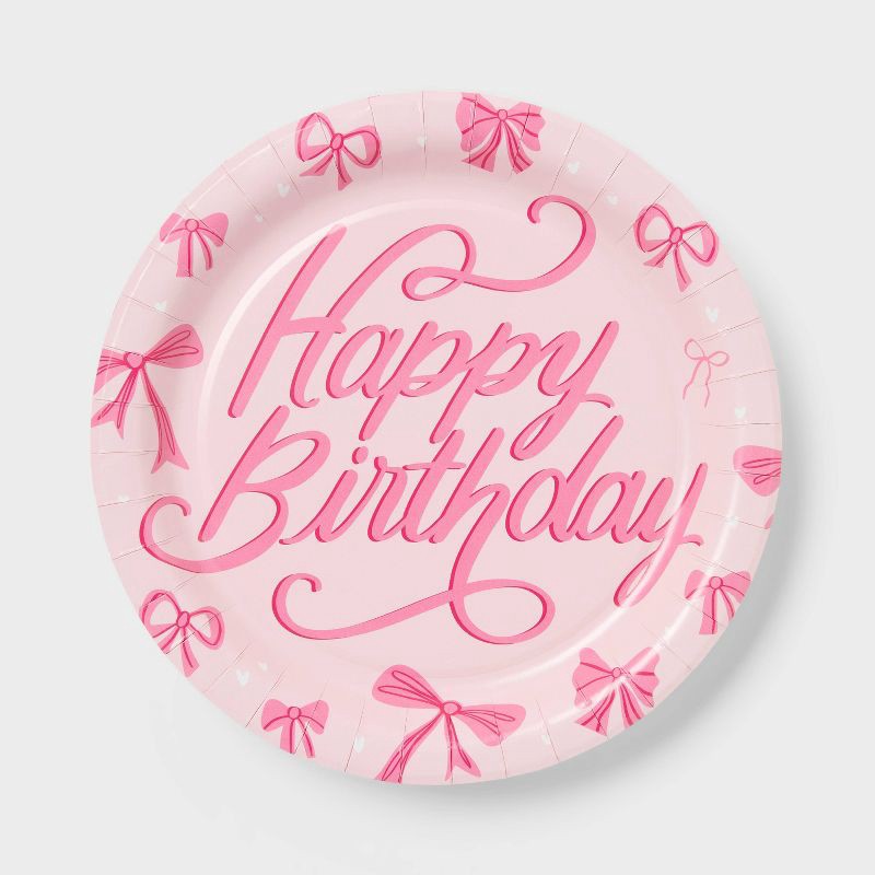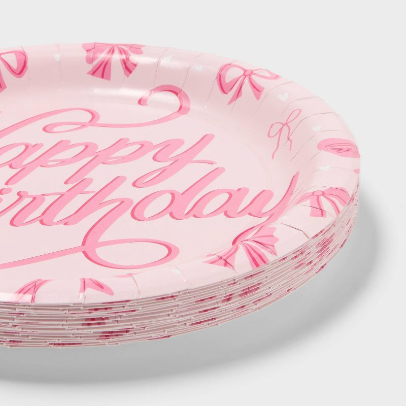 20ct Pink "Happy Birthday" Bows Dinner Paper Plates - Spritz™"