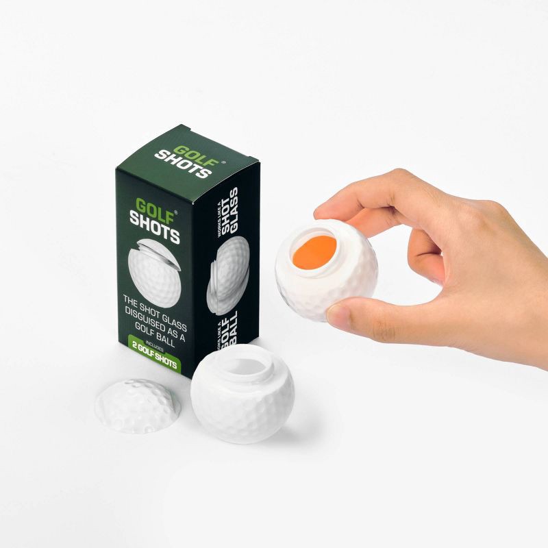 - Includes 2 golf ball-shaped shot glasses.