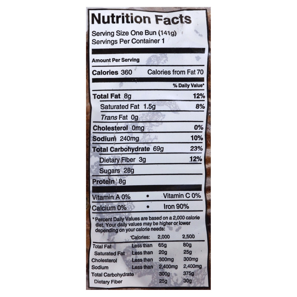 Flour (Wheat Flour, Malted Barley Flour, Niacin, Reduced Iron, Thiamine Mononitrate, Riboflavin, Folic Acid), Brown Sugar, Water, Raisins, Cherries (High Fructose Corn Syrup, Water, Citric Acid, Natur…