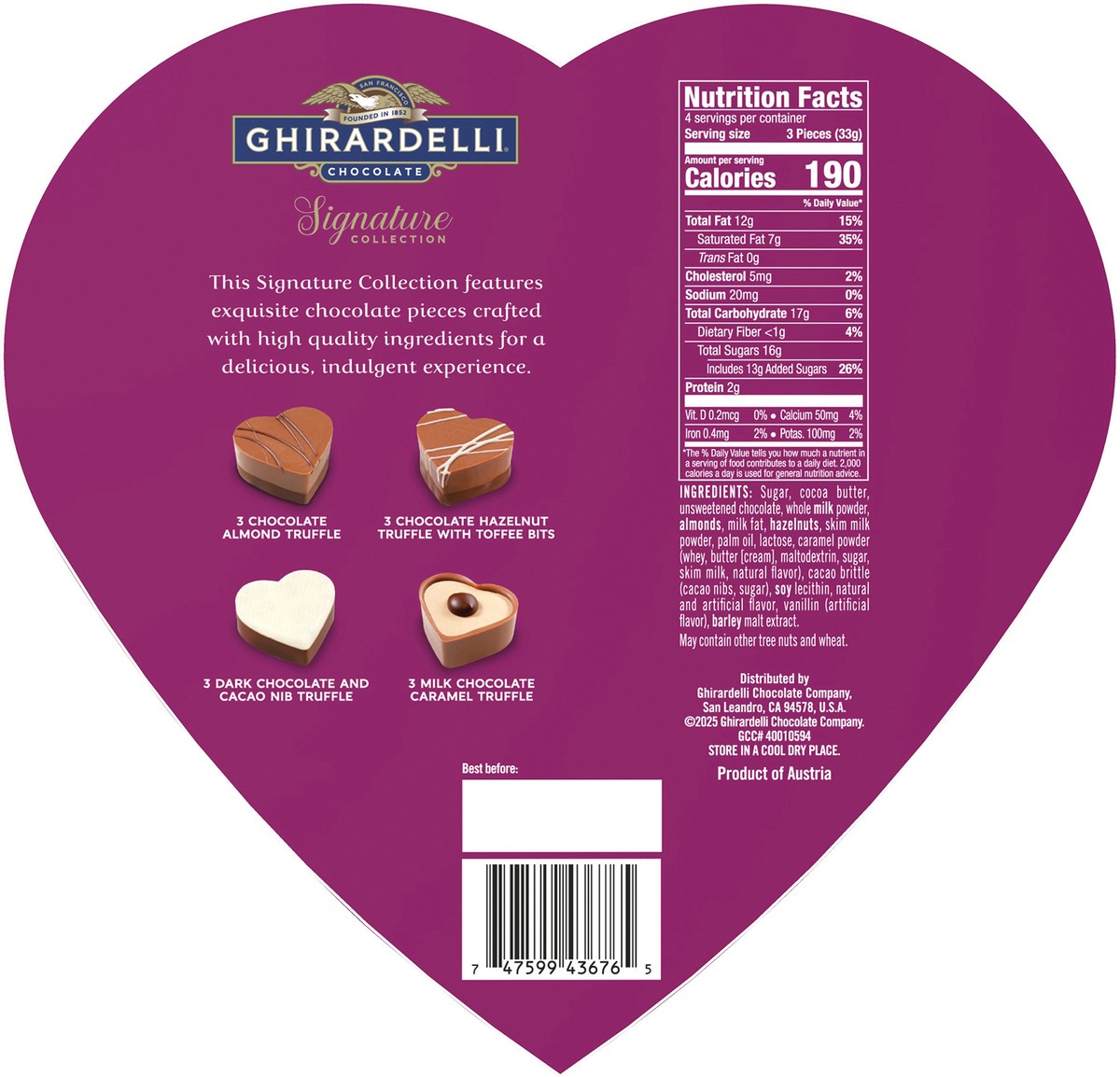 - Valentine-themed packaging adds a festive touch and includes plenty of GHIRARDELLI chocolate to share