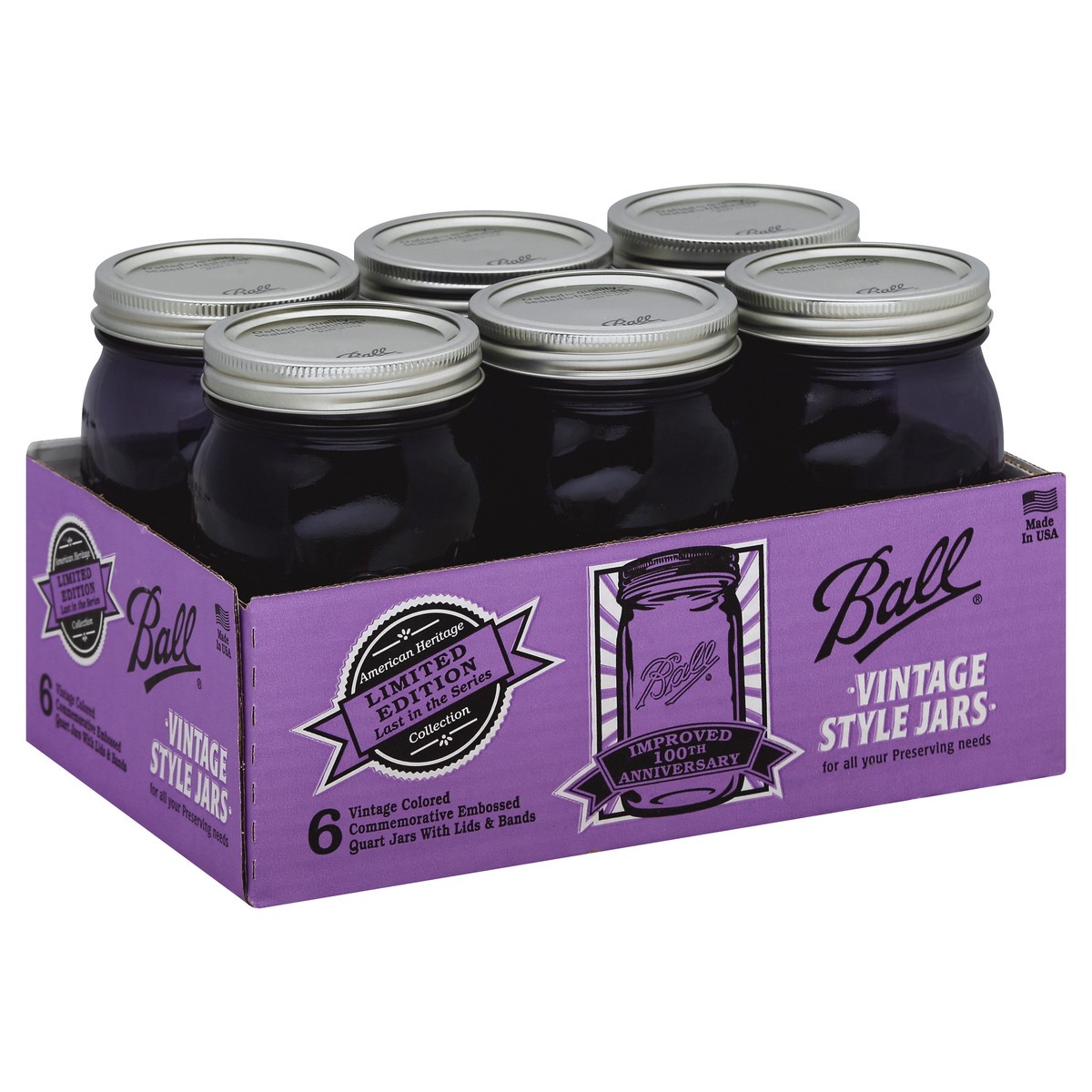 Limited Edition. 6 vintage colored commemorative embossed quart jars with lids & bands. Last in the series. American Heritage Collection. Improved 100th anniversary. For all your preserving needs. Cra…