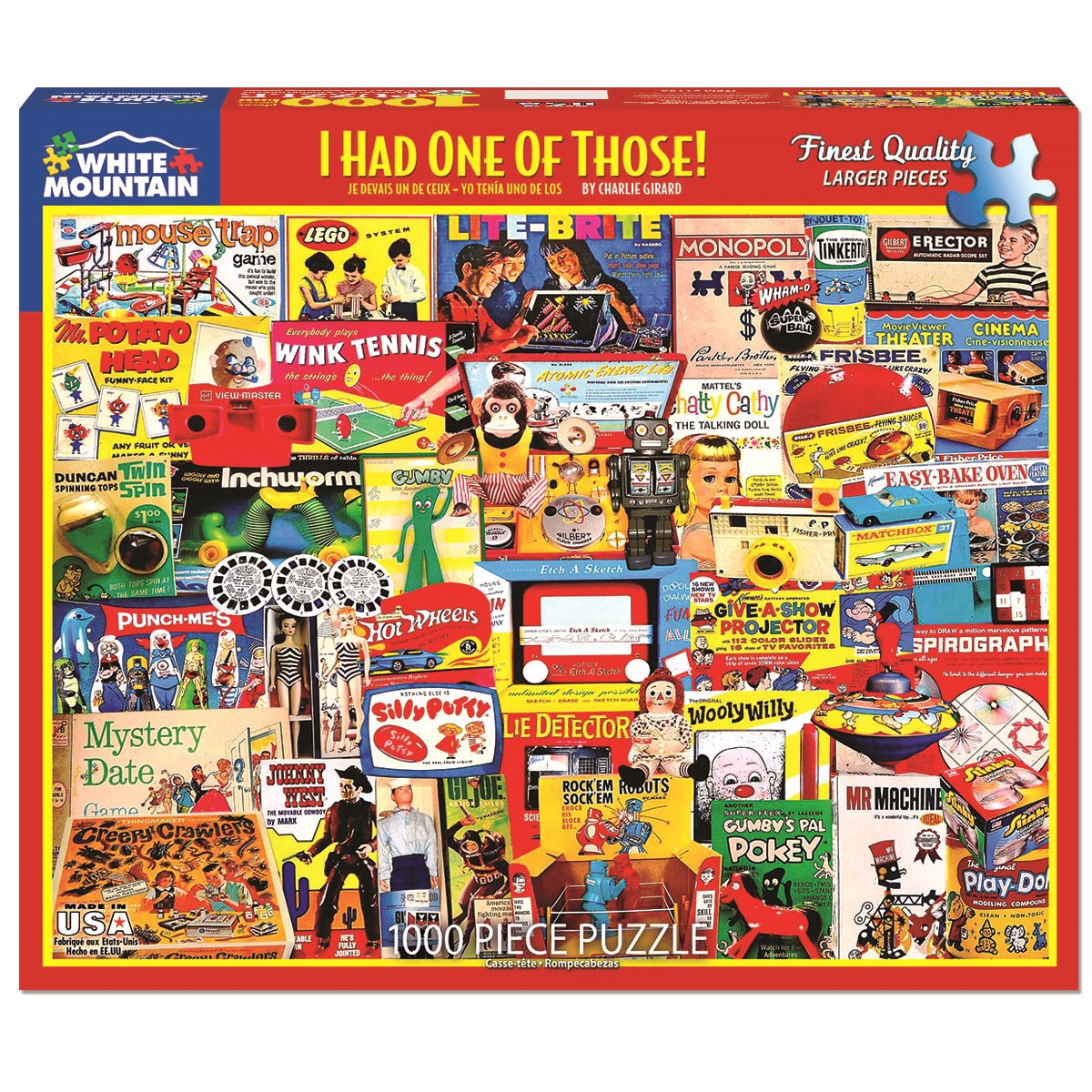 1000pc Retro Theme Collage Puzzle Assortment. Best Sellers and all are High Quality Made In The USA by White Mountain Puzzle CompanynnAvailable items include* Best Sellers, Cereal Boxes, Game Pieces, …