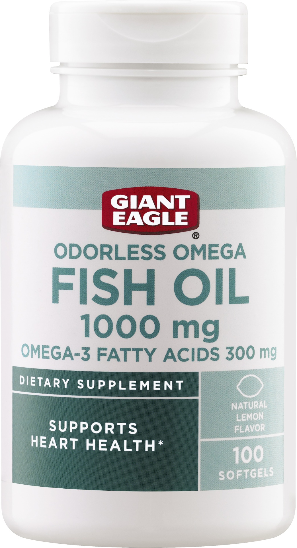Giant Eagle Lemon Flavor Odorless Omega Fish Oil 1000 Mg, 100 Softgels