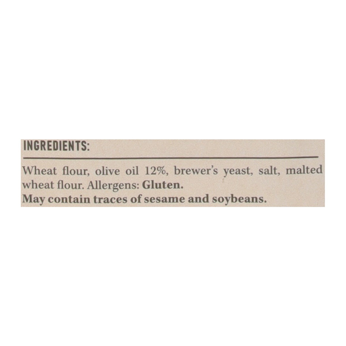 Wheat Flour, Olive Oil 12%, Brewer's Yeast, Salt, Malted Wheat Flour.