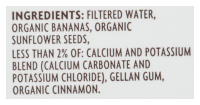 Filtered Water, Organic Bananas, Organic Sunflower Seeds, Less than 2% of: Calcium and Potassium Blend (Calcium Carbonate and Potassium Chloride), Gellan Gum, Organic Cinnamon.