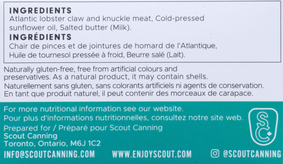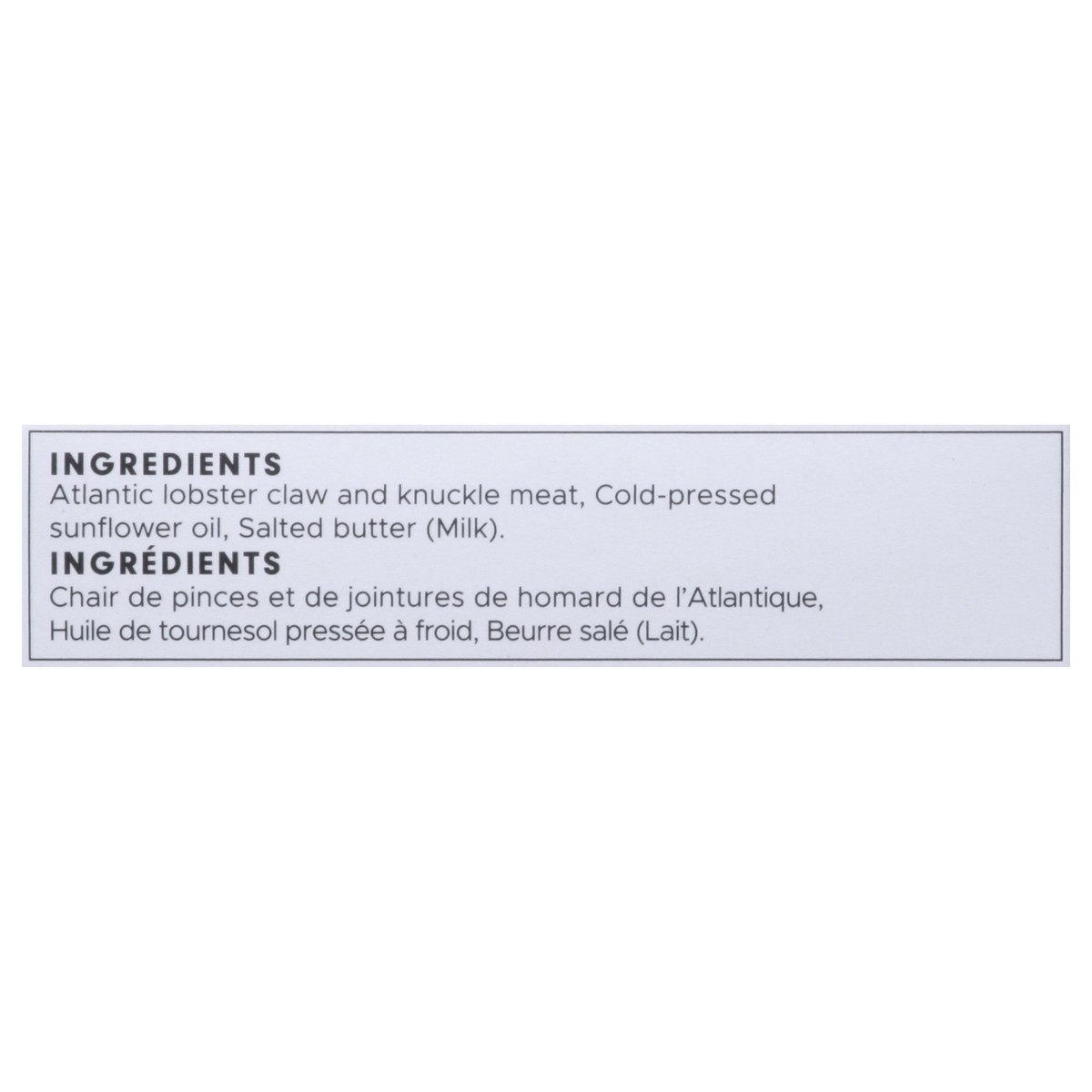 Atlantic Lobster Claw and Knuckle Meat, Cold-Pressed Sunflower Oil, Salted Butter (Milk).