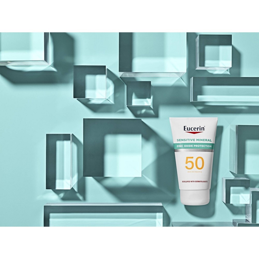 Eucerin Sun Sensitive Mineral Sunscreen Lotion SPF 50 is a fragrance free sunscreen that provides mineral sun protection for sensitive skin and is water resistant (up to 80 minutes) and sweat resistan…