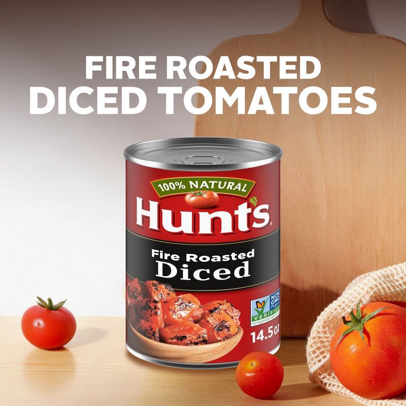 Get cooking with Hunt's Fire Roasted Diced Tomatoes. Gently roasted over an open fire for a great smoky, Southwestern flavor, these steam-peeled, diced tomatoes are a crowd-pleaser and pantry staple. …