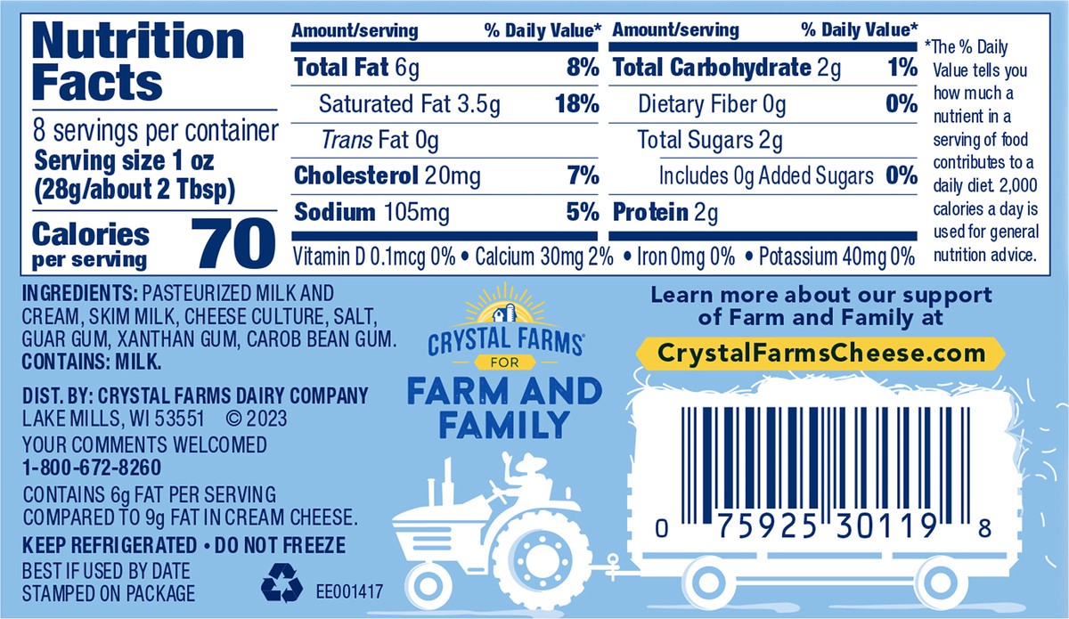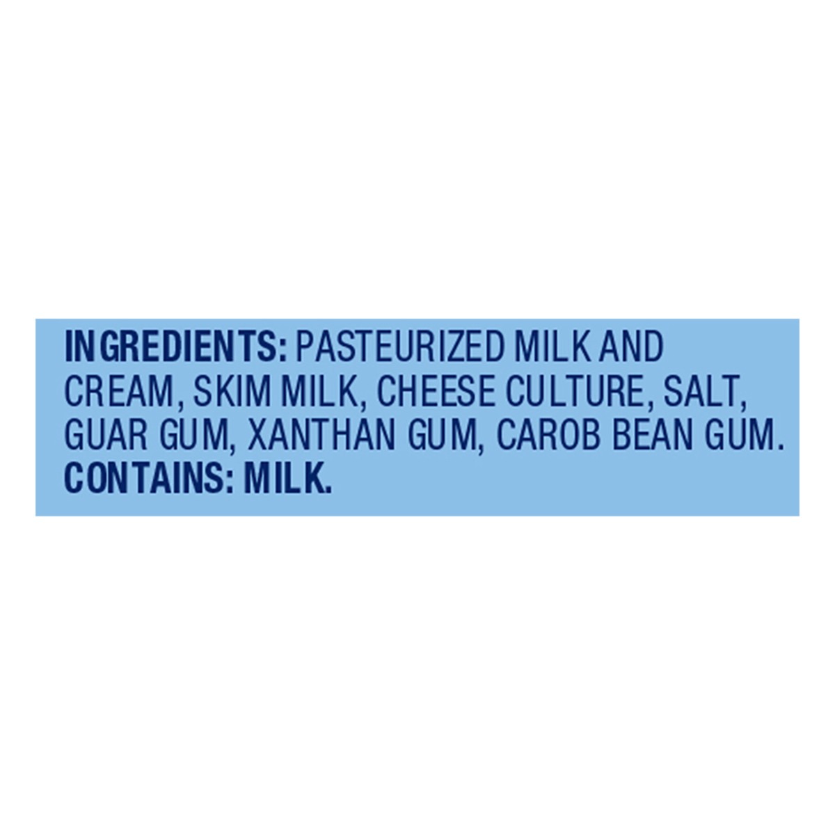 Pasteurized Milk and Cream, Skim Milk, Cheese Culture, Salt, Guar Gum, Xanthan Gum, Carob Bean Gum.