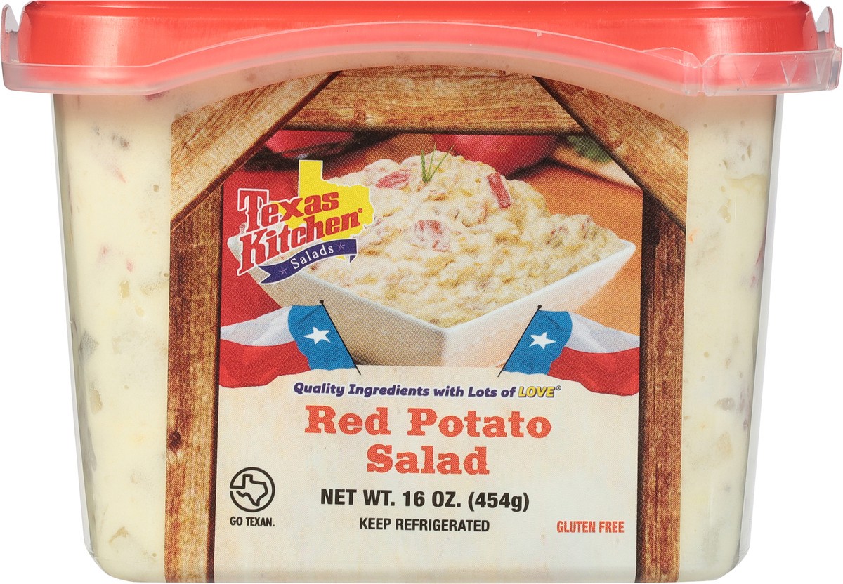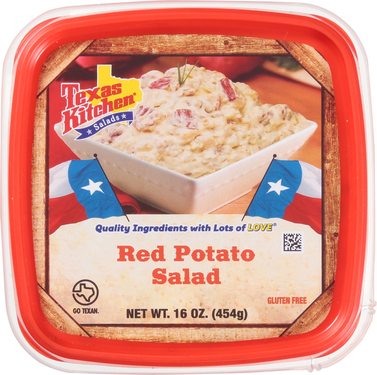 Texas Kitchen Red Potato Salad is crafted with diced red potatoes, loaded with hard boiled eggs, crisp celery, and diced red peppers in a perfect blend of sweet relish, mayonnaise and salad dressing t…