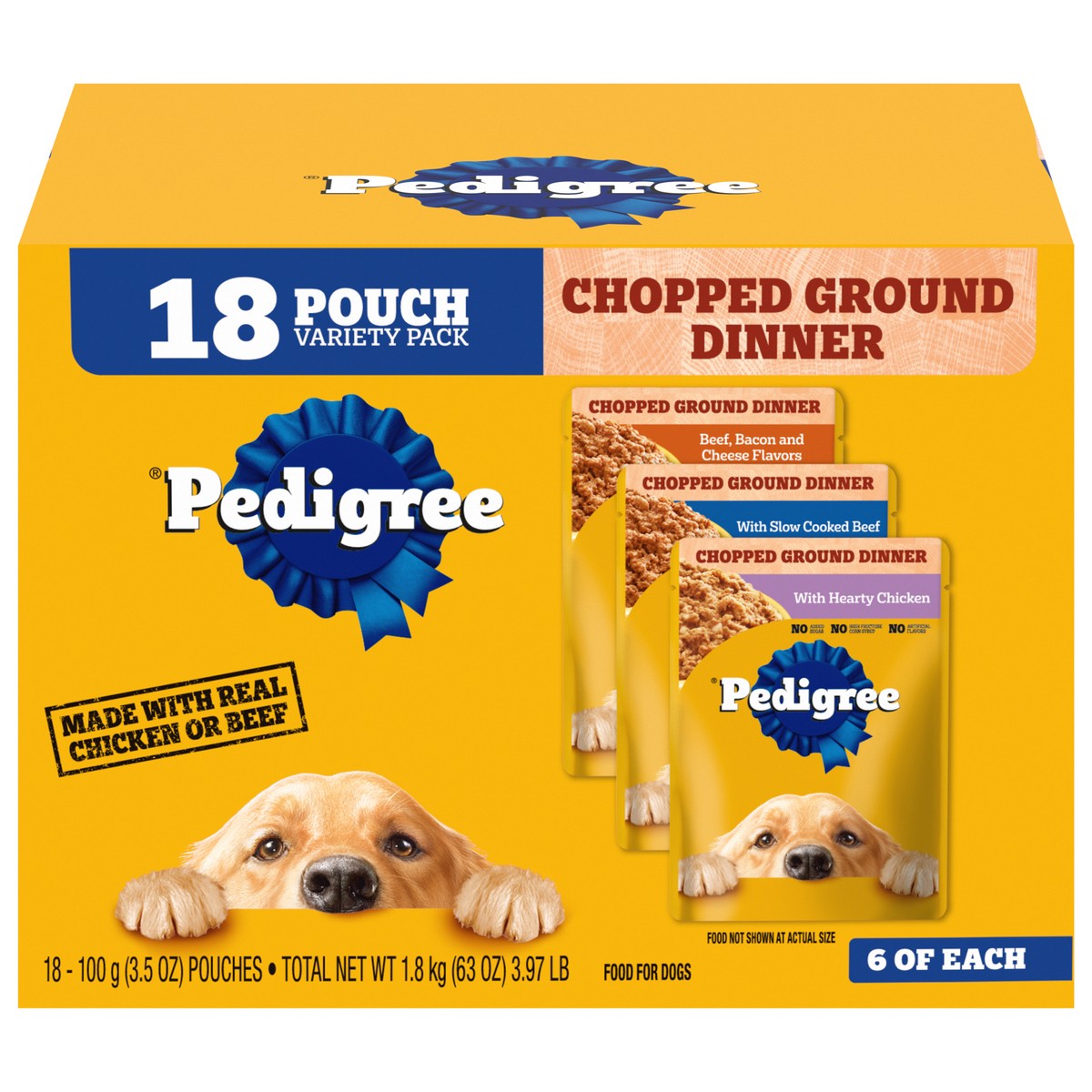 Pedigree Chopped Ground Dinner Food for Dogs Variety Pack 18 - 3.5 oz Pouches