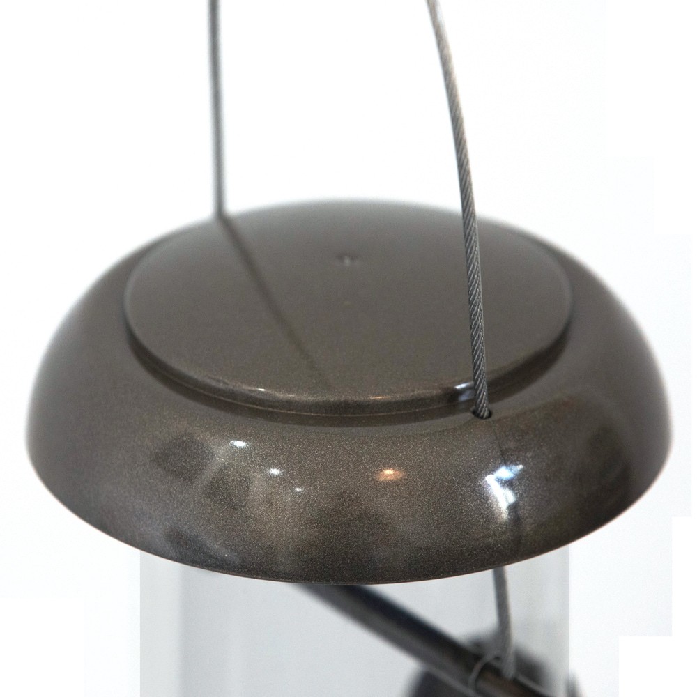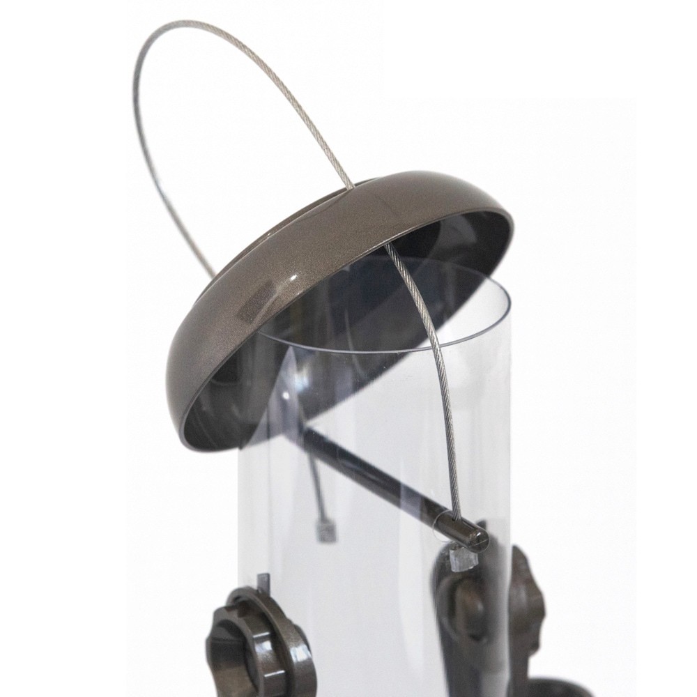 Attractive pewter color plastic tube feeder with 4 lb seed capacity. With our patent pending easy to use port system, its simple and quick to switch back and forth between thistle and mixed seeds. Wit…