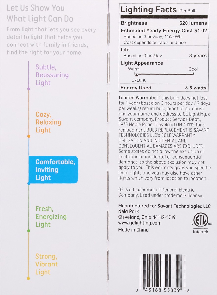 Ge Led 8watts 60watts 3 Yr Sw 4 Pack - Each