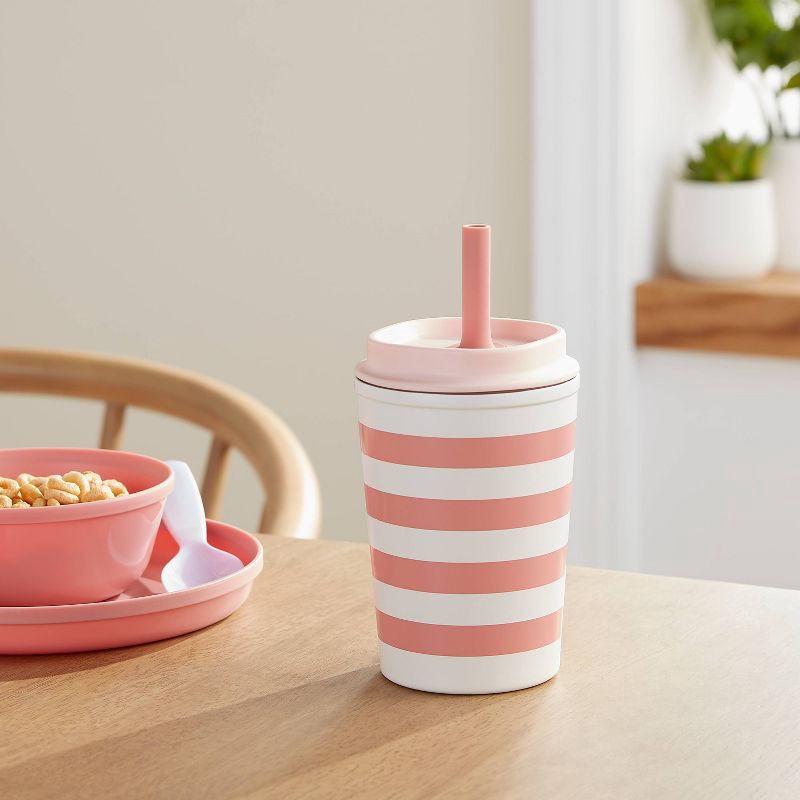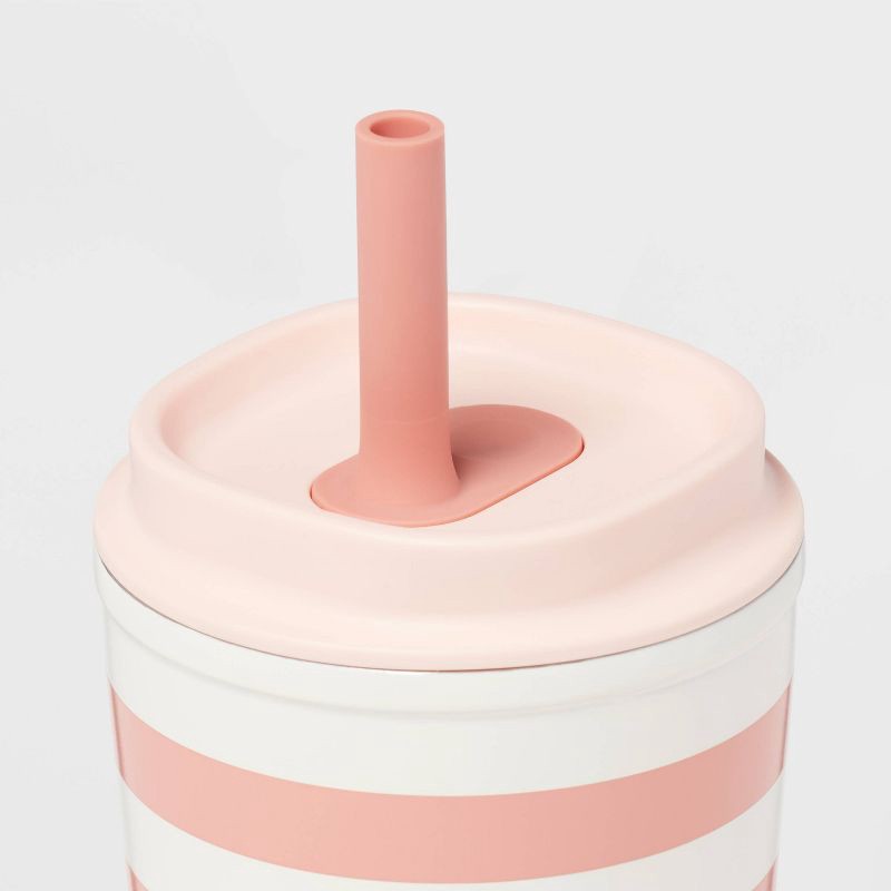 Your kid can enjoy their fave drinks at home or on the go with this 12-Ounce Leak Proof Stainless Steel Portable Straw Tumbler from Pillowfort™. Made from stainless steel, this lidded tumbler is decor…