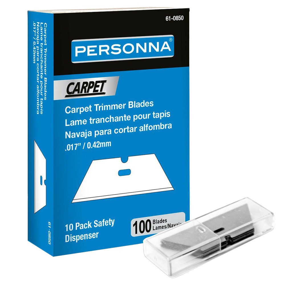 Heavy duty, high carbon, chisel edge carpet trimmer blades. Blades come in a tube of 10 for convenient storage and safety. Blades are utility shaped and have a chisel edge to be used in standard utiliā¦