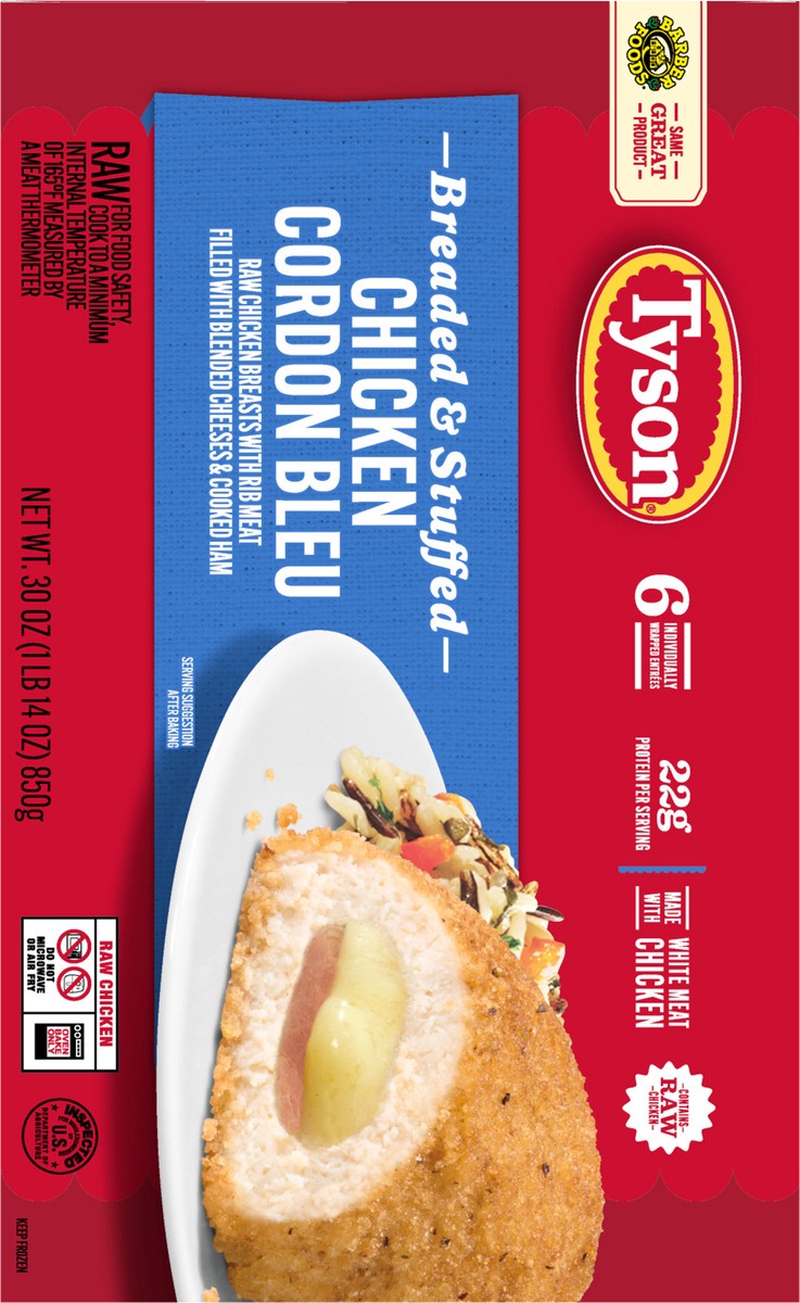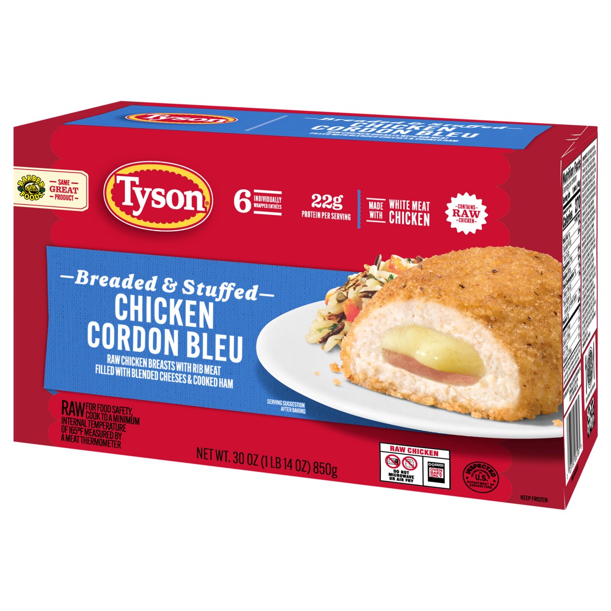 For a delicious entree that is easy to prepare, Tyson Breaded Raw Stuffed Chicken Breasts Cordon Bleu are perfect for any night of the week. We start with a creamy blend of cheeses, add a generous sli…