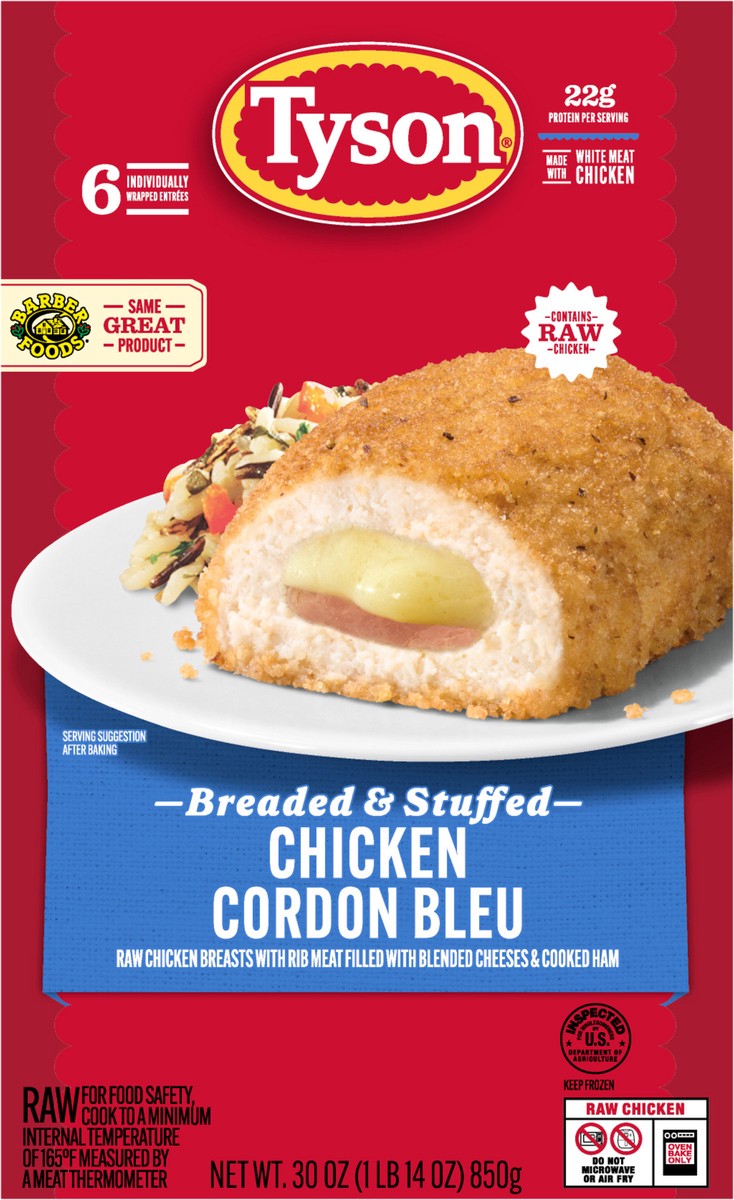 For a delicious entree that is easy to prepare, Tyson Breaded Raw Stuffed Chicken Breasts Cordon Bleu are perfect for any night of the week. We start with a creamy blend of cheeses, add a generous sli…