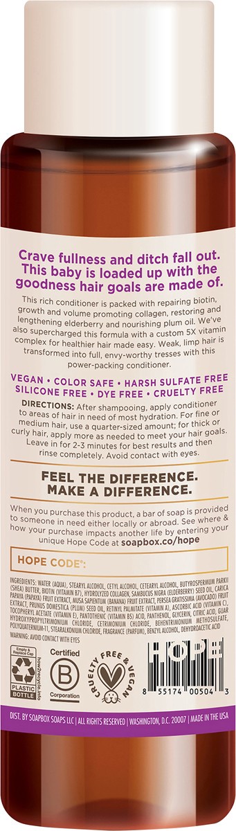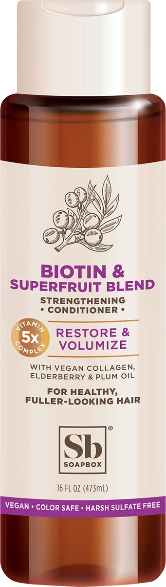 Restore and volumize your hair with Soapbox Biotin & Superfruit Blend Strengthening Conditioner for healthy, fuller-looking hair. This volumizing conditioner strengthens hair with vegan collagen, elde…