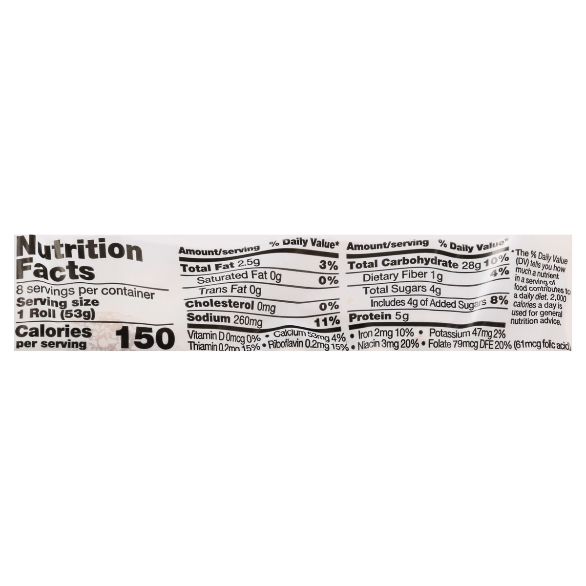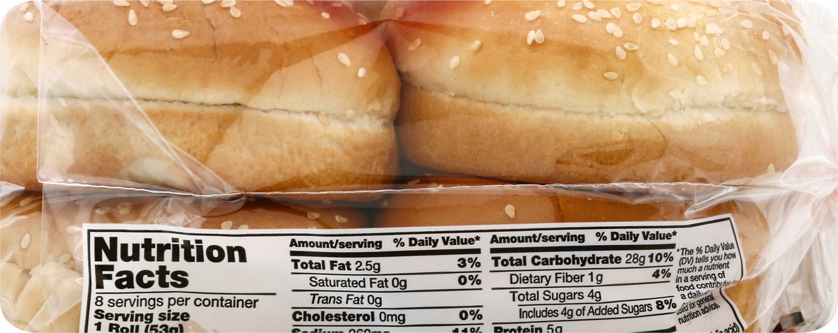 No artificial colors or flavors. 0 g trans fat per serving. Per 1 Bun Serving: 150 calories; 0 g sat fat (0% DV); 260 mg sodium (11% DV); 4 g total sugars. No high fructose corn syrup. Quality baking …