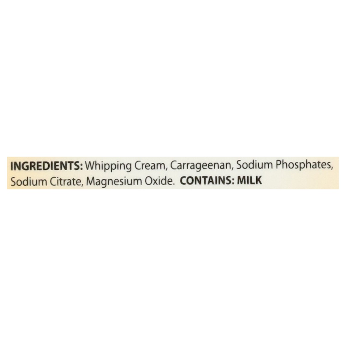 Whipping Cream, Carrageenan, Sodium Phosphates, Sodium Citrate, Magnesium Oxide.