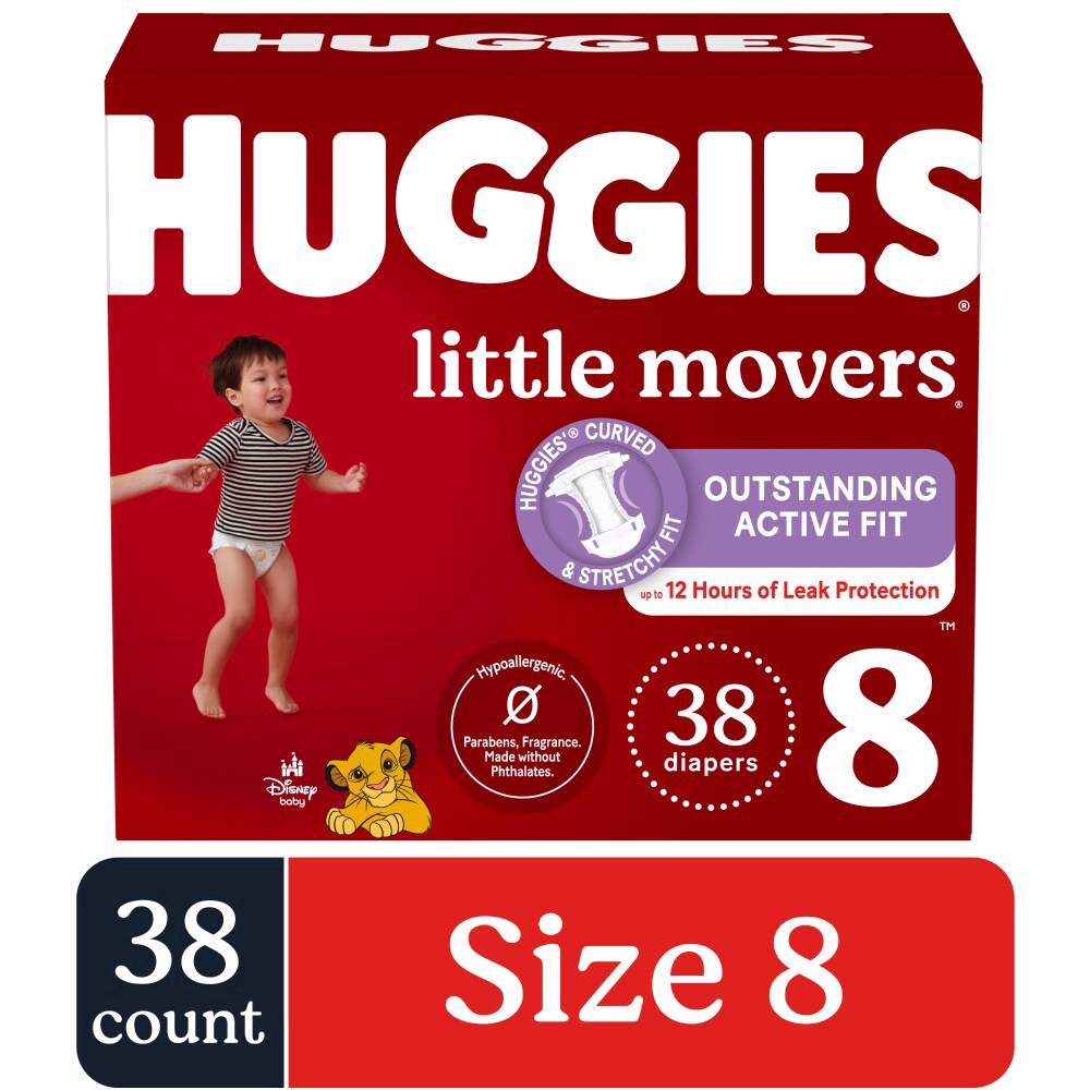 Huggies Little Movers Baby Diapers are designed to stay in place through active play! Now available in New Size 8 (46+ lbs), these disposable baby diapers are designed for worry-free running, jumping …