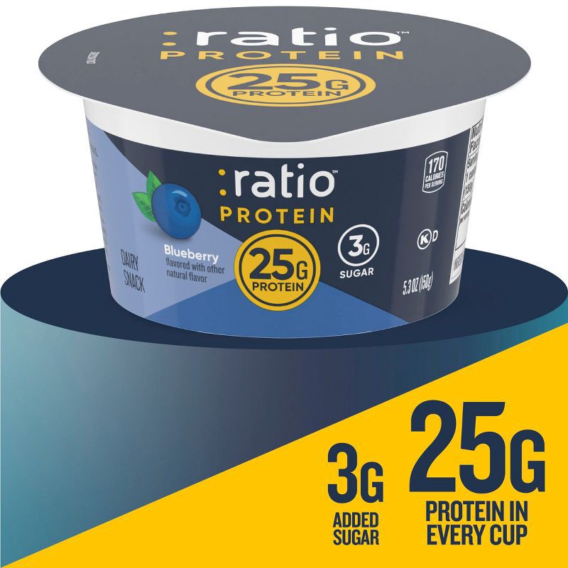 - CONTAINS: One 5.3 oz cup of Ratio Protein Blueberry Yogurt Cultured Dairy Snack